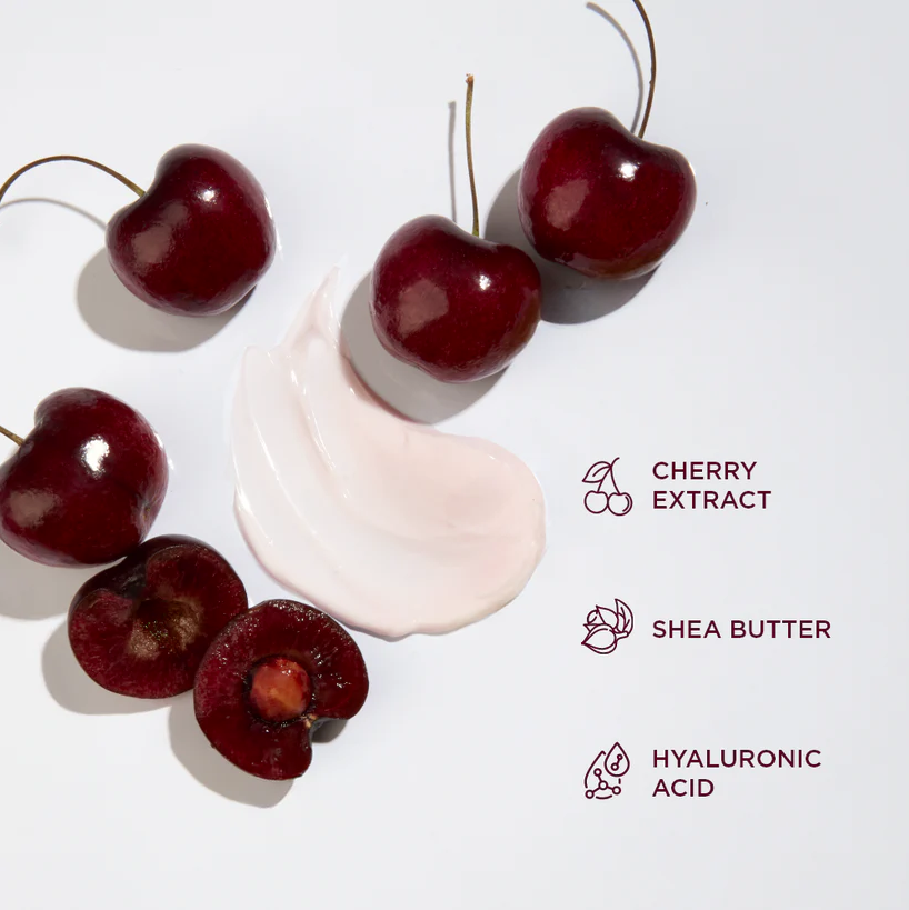 Extract de cireșe – bogat în antioxidanți și vitamine, susține regenerarea epidermei, ajută la protejarea împotriva stresului oxidativ și îmbunătățește moliciunea și elasticitatea mâinilor.