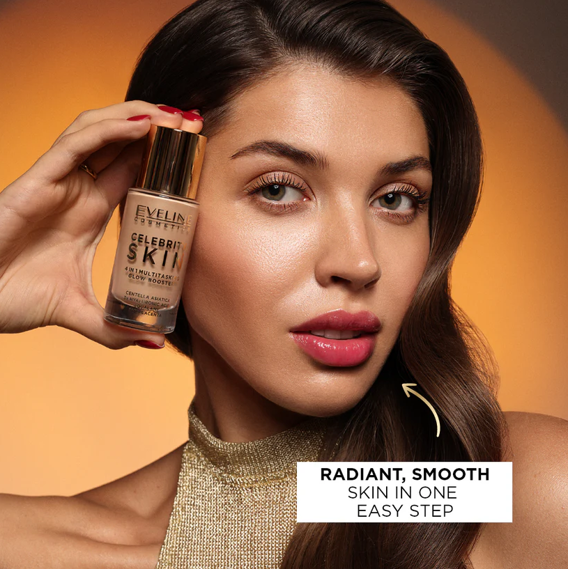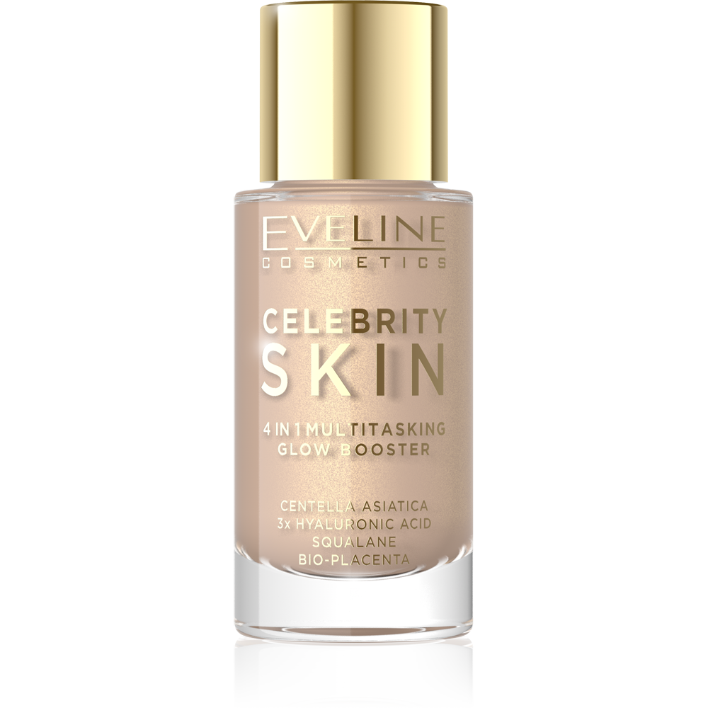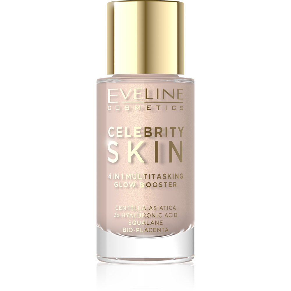 Booster 4 în 1 Celebrity Skin Glow Booster face tenul tău să arate radiant imediat după aplicare. O formulă ușoară conține primer, o nuanță pentru ten, un iluminator și un filtru de netezire – tot ce ai nevoie pentru un ten sănătos, neted și proaspăt. Produsul uniformizează ușor nuanța tenului, adaugă strălucire și netezește vizual, fără a crea un efect de mască sau a îngreuna tenul. Combină machiajul cu îngrijirea pielii – hidratează, regenerează și protejează, astfel încât pielea ta arată și se simte grozav toată ziua. Îl poți folosi singur ca primer sau peste fond de ten pentru a accentua strălucirea. Două nuanțe universale se vor potrivi cu tenul tău și vor adăuga o strălucire naturală.