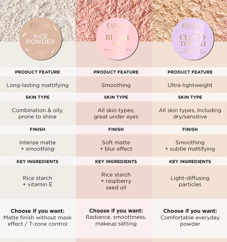 Formulă ultra-ușoară, fină – atât de ușoară încât nu o poți simți și abia o poți vedea. Matifiază și fixează ușor, fără a îngreuna pielea. Ideal și pentru retușuri.